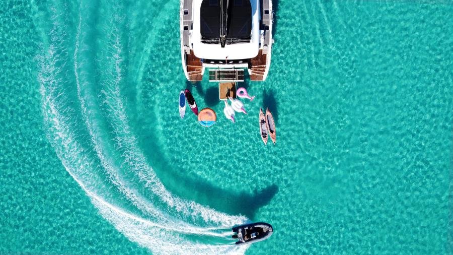 - Aft crossbeam with continuous Sun-Lounging area + 4 storage lockers + 2 propane lockers. Dedicated stowage for 2 X 10-person ISO 9650 Life Rafts.