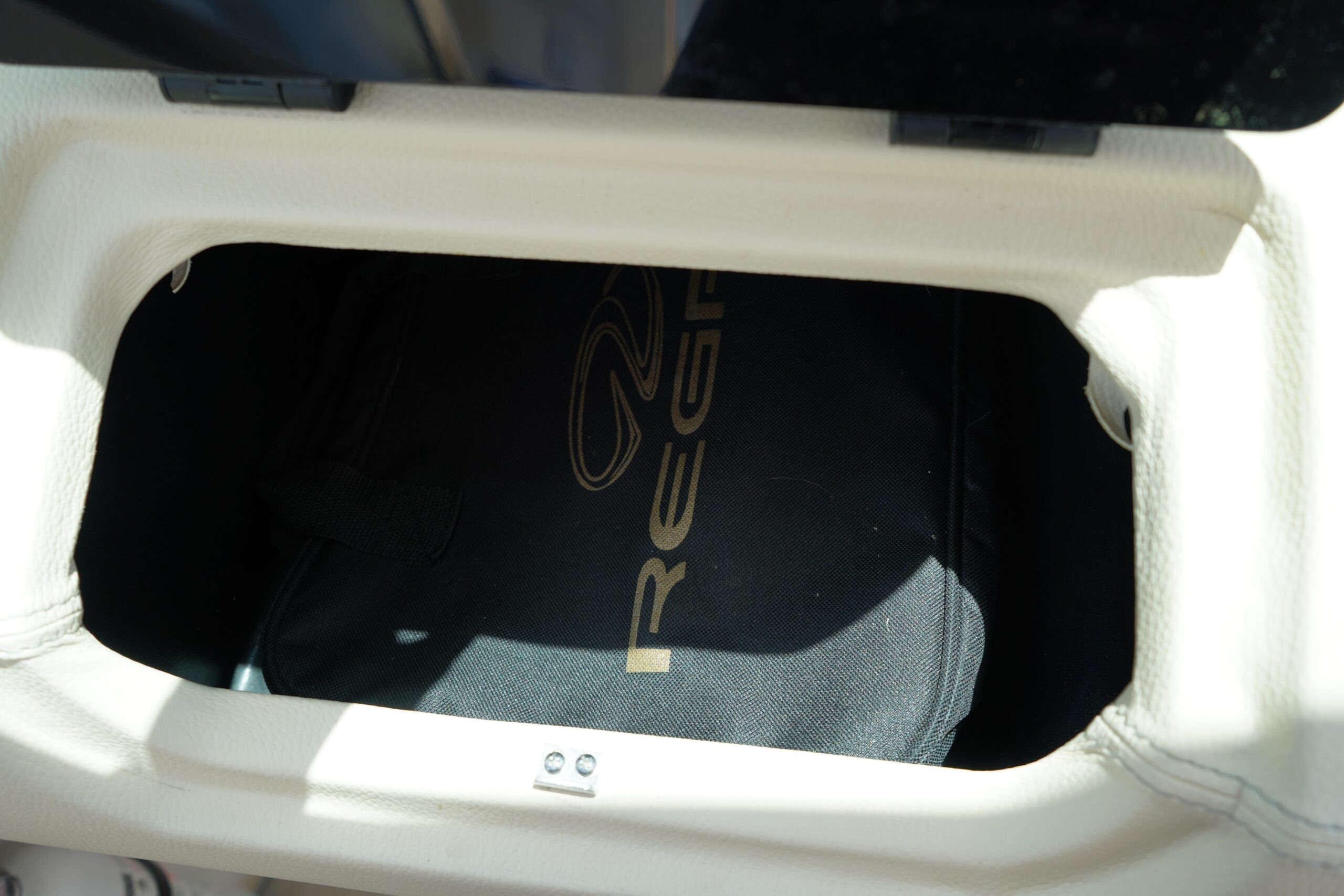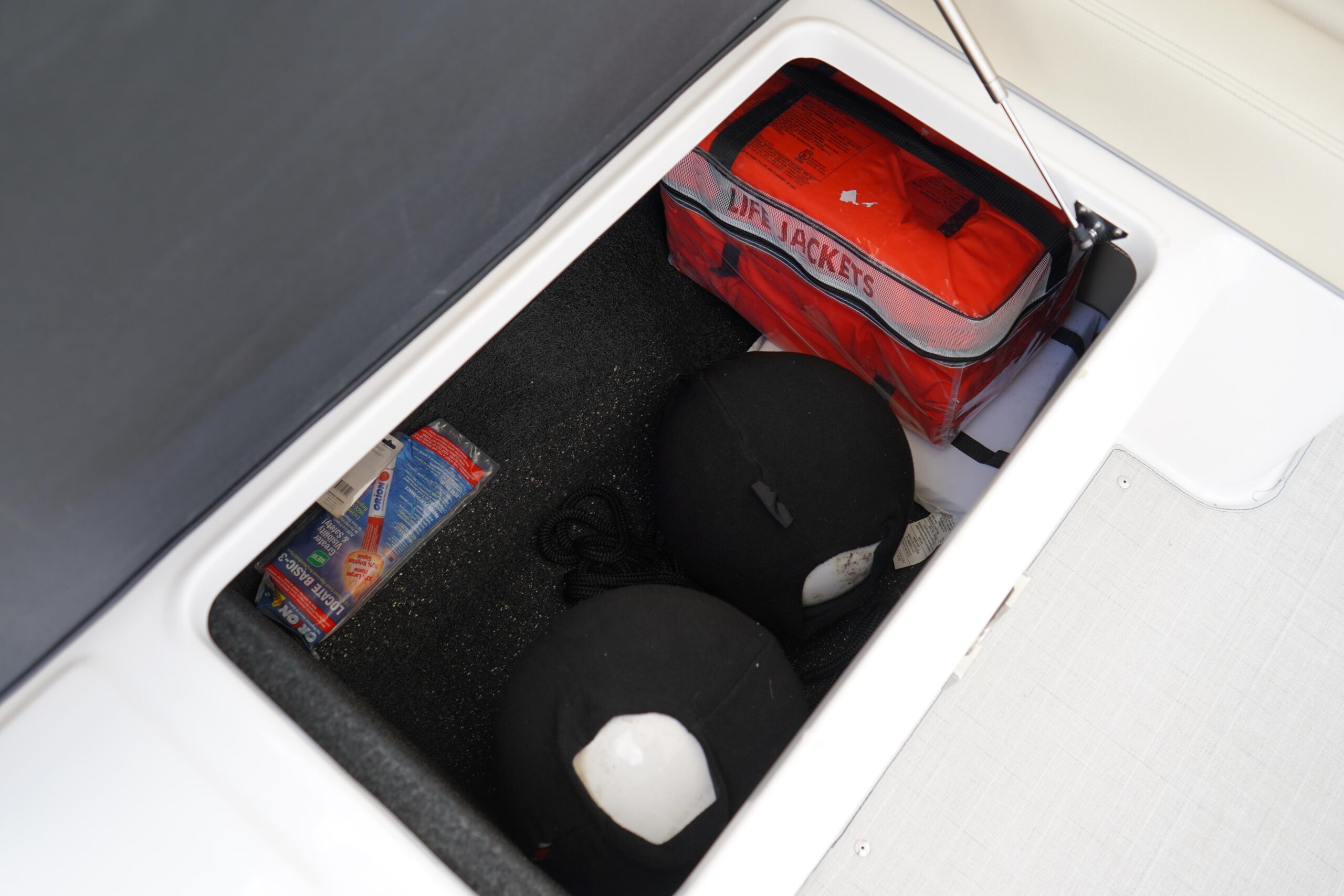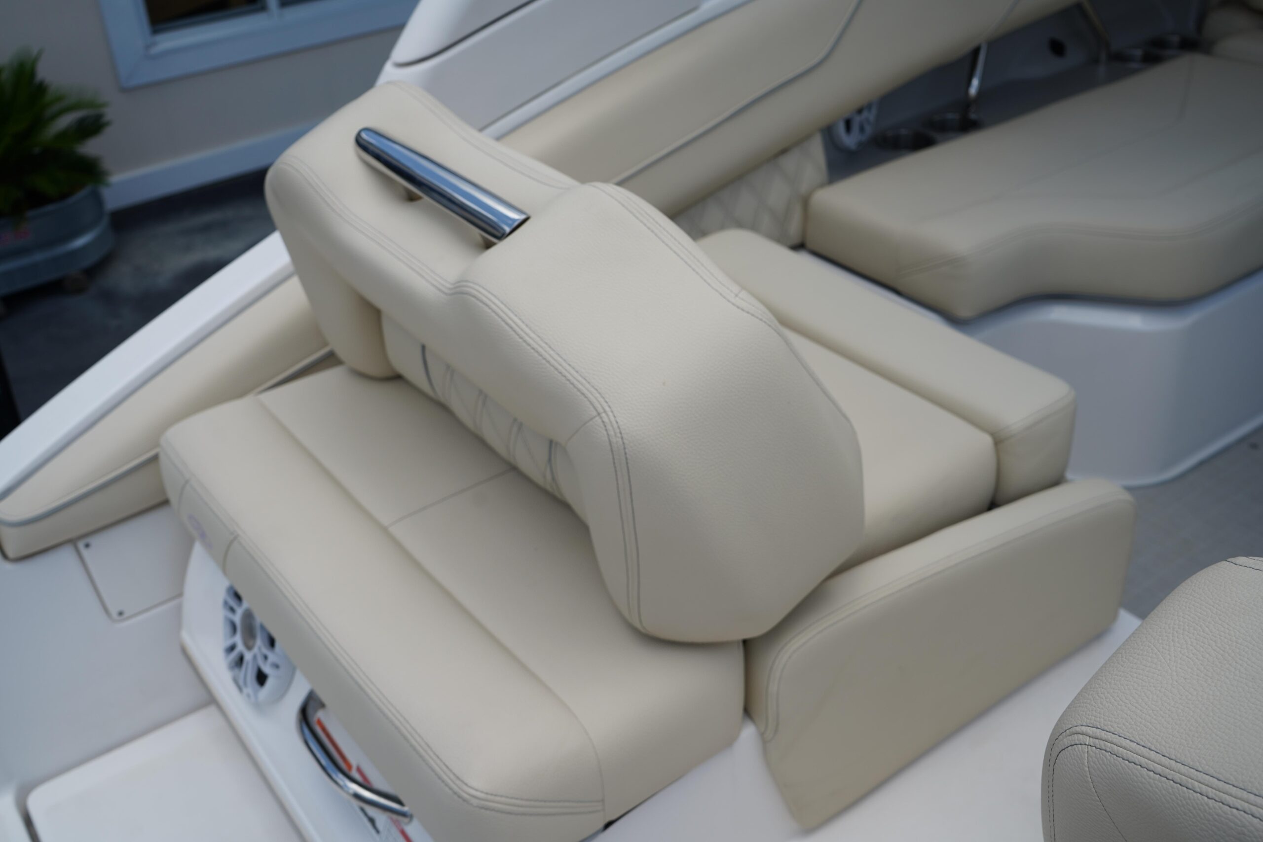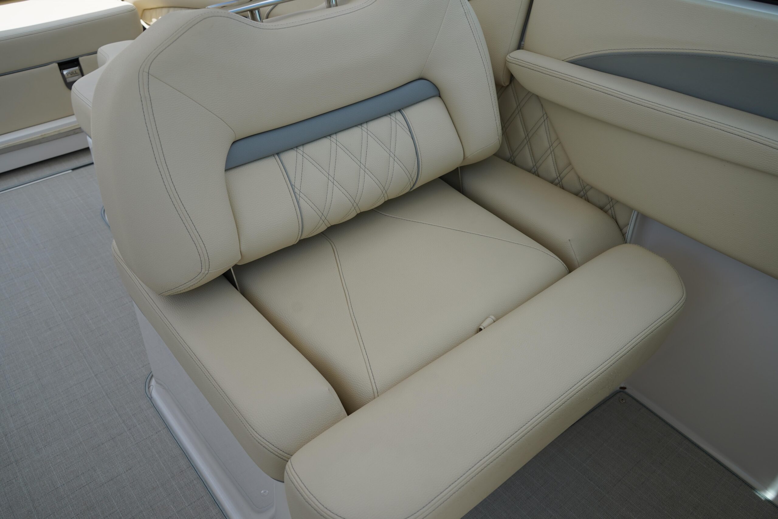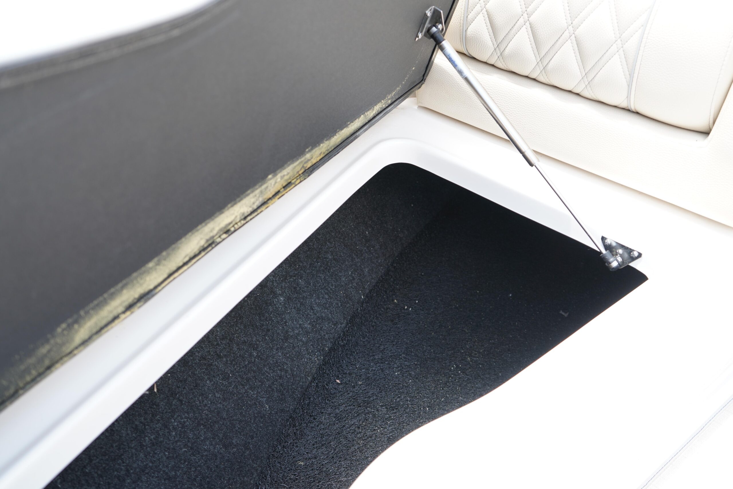 All the bells and whistles – Fusion Stereo System, Twin Garmin displays, trim tabs Snap in flooring, folding hard top.
