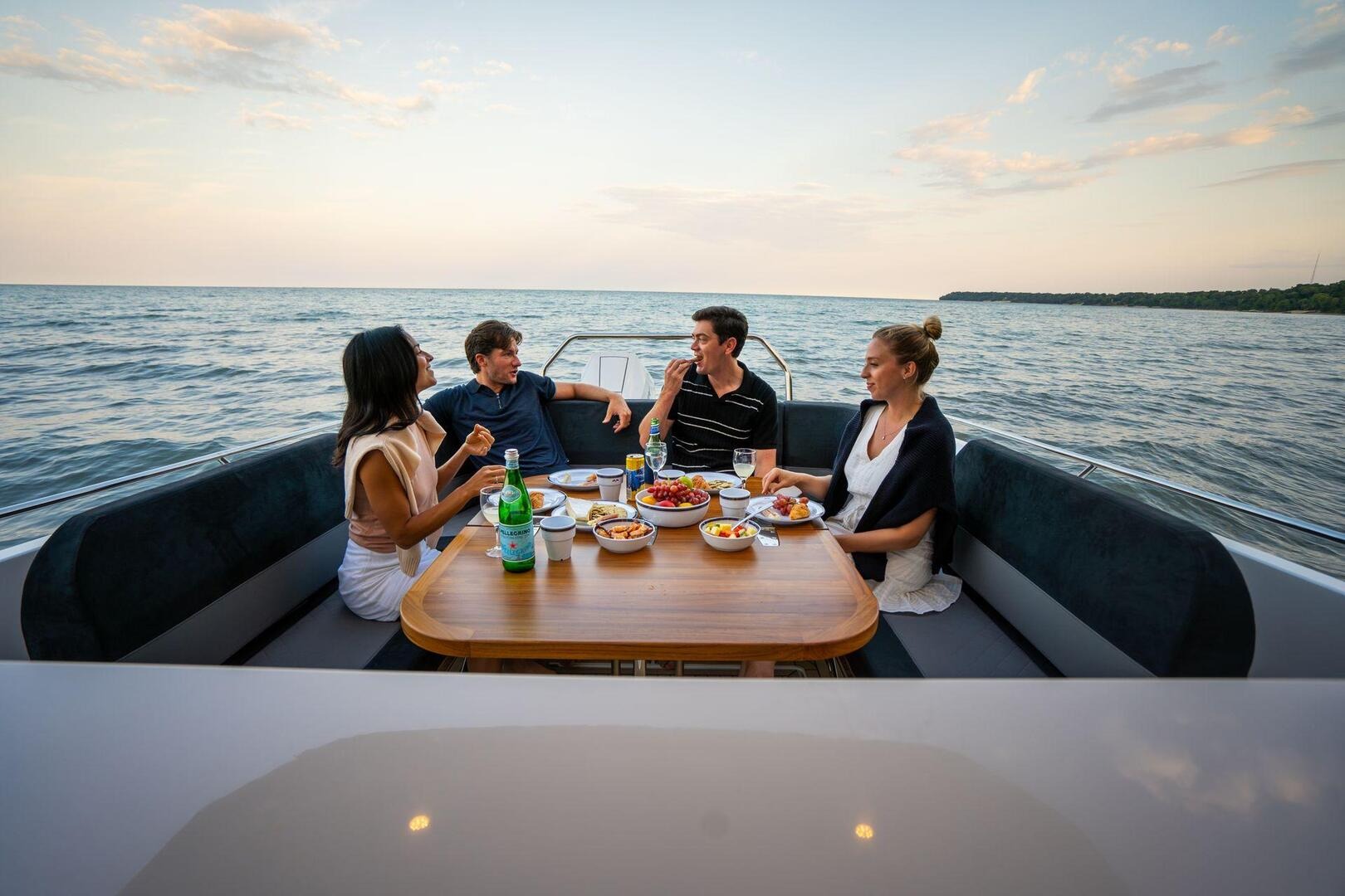 The T11 is a 12.4-meter-long (40 feet and 7 inches) walk-around for excursions with plenty of space for up to 12 people to socialize or take part in leisure activities, while also providing enough room for everyone onboard to face the direction of travel when moving at higher speeds.