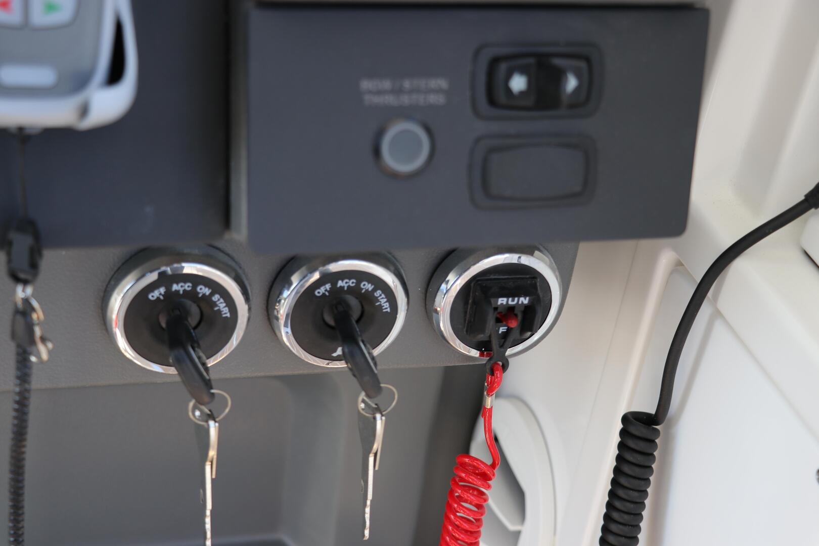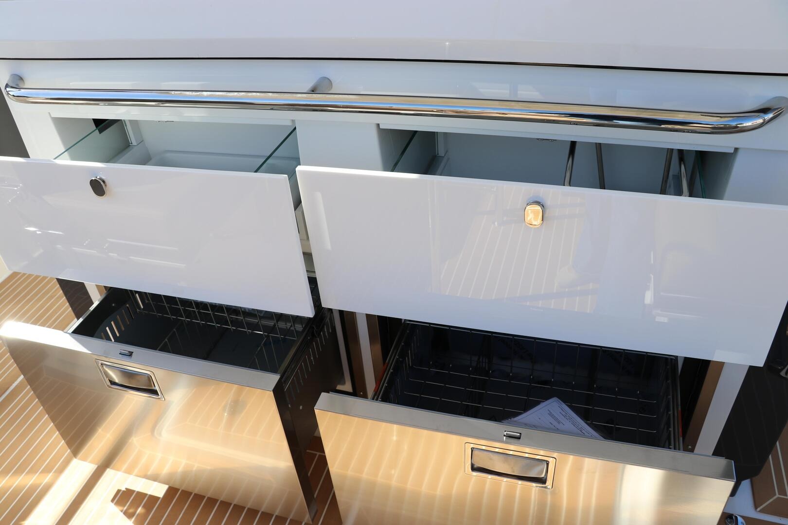 The twin Mercury 400 engines let you move swiftly from one destination to the next, while the diesel generator powers all your onboard amenities, so you never feel disconnected. Maneuvering in tight spaces is a breeze thanks to the bow thruster, and with the windlass anchoring system, you can effortlessly settle in at your favorite spot.