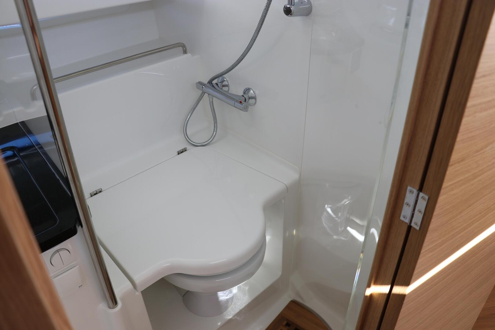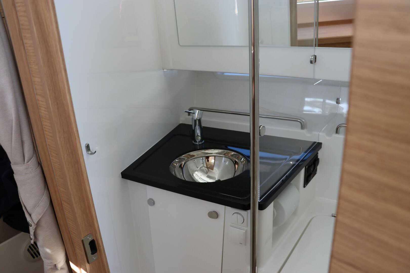 The cockpit is meticulously put together in typical Nimbus fashion, with extra storage compartments and space for three people to sit in the direction of travel. The foredeck offers room for a divan and a sun bed. The T11 has a large storage hatch at the front of the cabin. Thanks to the large gunwale sides, the foredeck can also be used as a seating area and socializing space. Below deck, you will find two separate cabins with space for two couples or a family of four. Additionally, there is a spacious bathroom with a toilet, shower, and sufficient headroom.