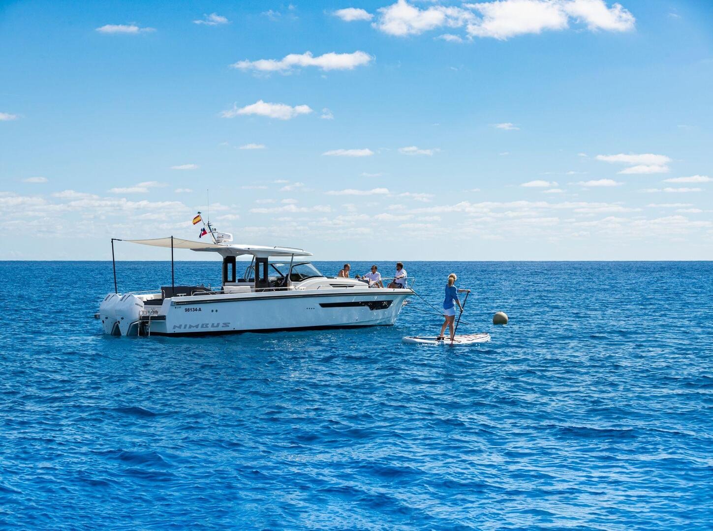 The Nimbus T11 is a versatile 40-foot walk-around boat, designed for excursions and leisure activities, comfortably accommodating up to 12 people. With a spacious lounge area that adapts for sunbathing, cruising, dining, and more, it’s perfect for socializing on the water. The T11 features flexible seating, an outdoor galley, and ample storage for water sports equipment. The boat’s ergonomic design ensures freedom of movement, from the aft deck to the foredeck. Below deck, you’ll find two cabins and a fully equipped bathroom, making it ideal for extended trips. Explore luxury and performance with the Nimbus T11