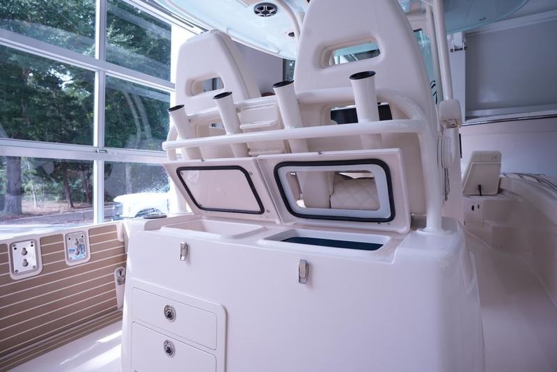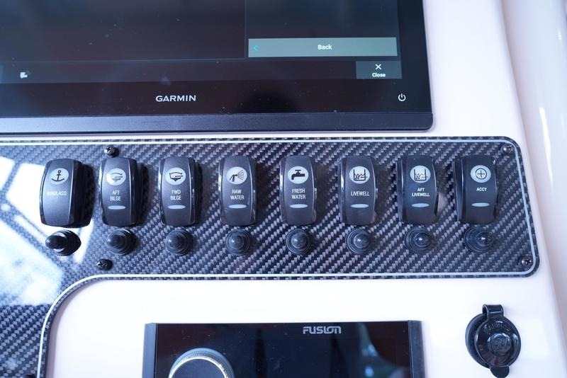 - Rigging station – freshwater shower (recessed), cutting board & bait locker