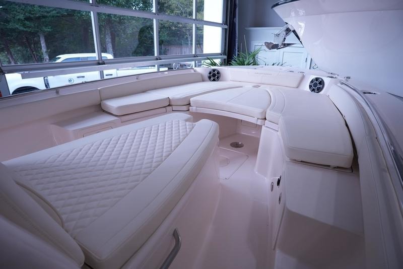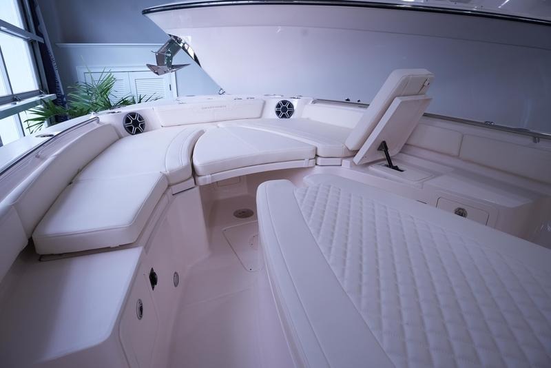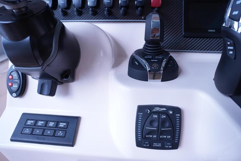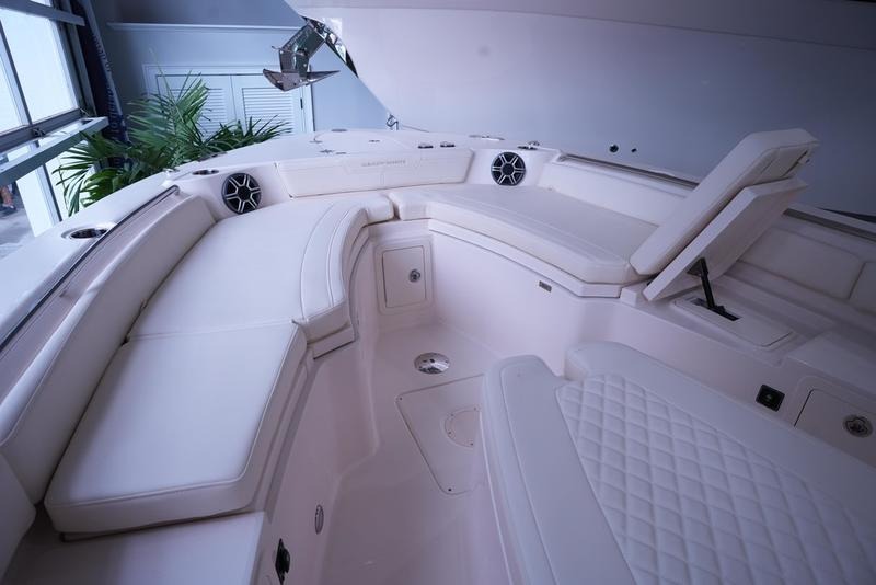 - Seating – port & starboard bow cushioned seating w/electromechanically adjustable backrests