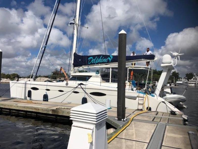 “DELPHINE” is a very well equipped French built cruising catamaran. Over the past two years, over $200,000.00 was spent upgrading the vessel. Some of the upgrades include new engines, rigging, sails, air conditioning, and interior appointments. The vessel was found to be structurally and mechanically sound. Her machinery components, fuel system, wiring and other major systems, appear serviceable and have been installed in accordance with USCG regulations, American Boat and Yacht Council and National Fire Protection Association (NFPA302) standards, except where/if noted below in the ?Recommendations? section of this report.