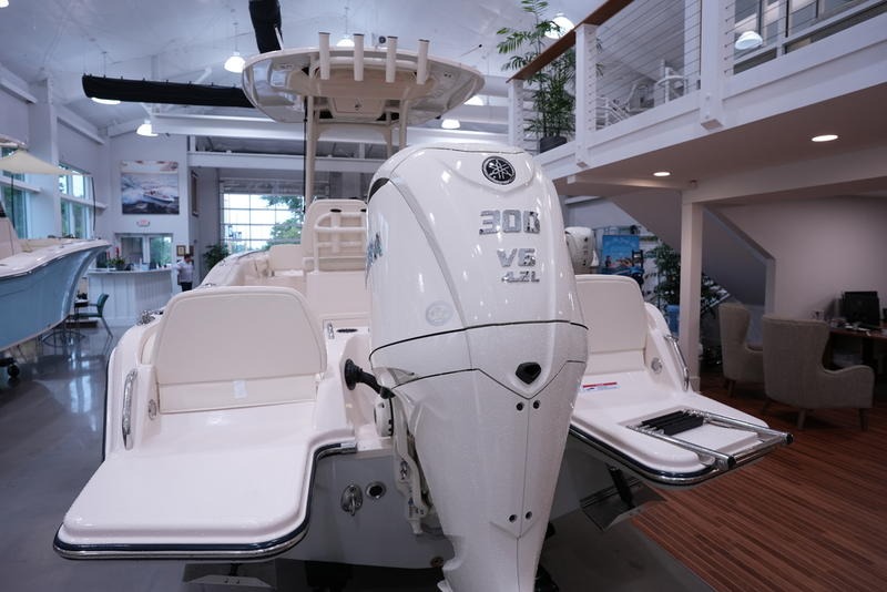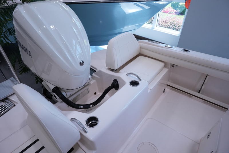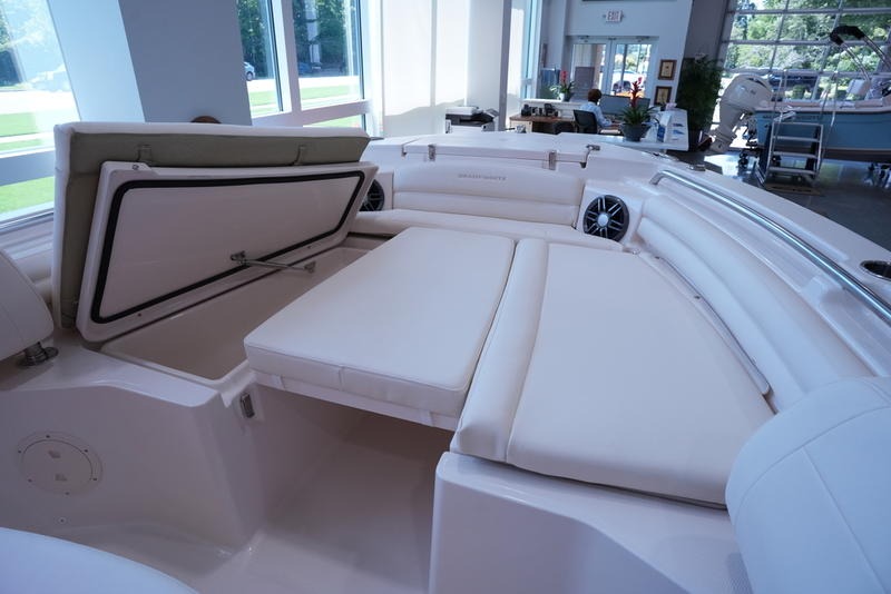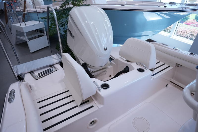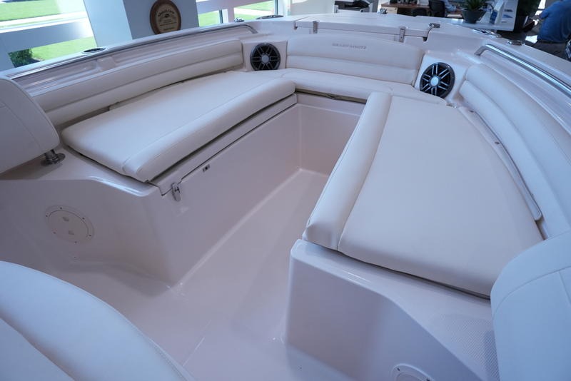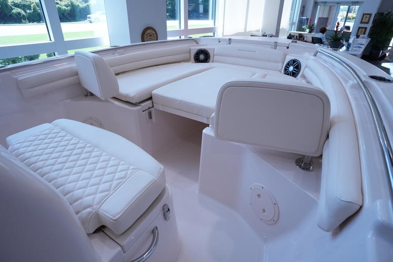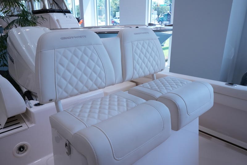 • Seating – aft jump seats (2) w/innovative swing-open, walk-through backrests & reversible self-stowing cushions w/non-skid safety treads