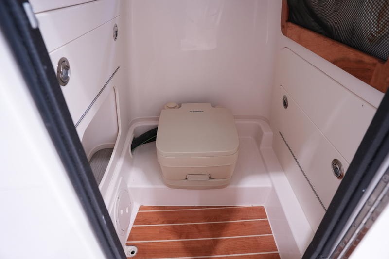 • Head – lockable console w/stand up head area, LED lighting, bulk storage & portable head