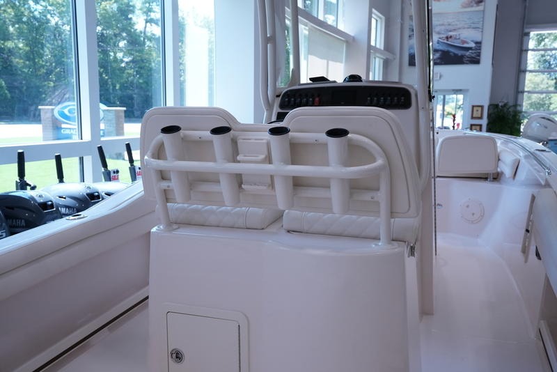 • Seating – lean bar w/backrest, flip-up bolster, tackle trays, lockable storage, rod holders (4) & fire extinguisher holder