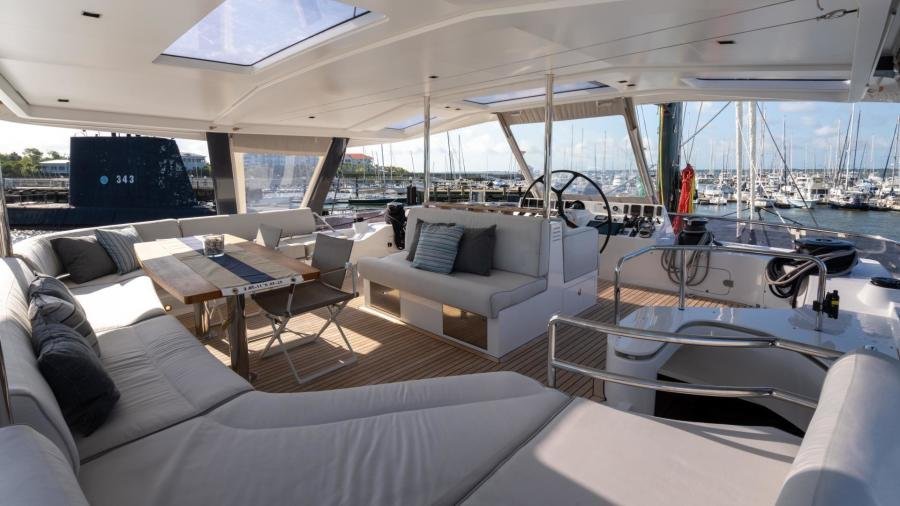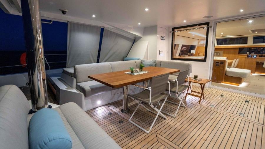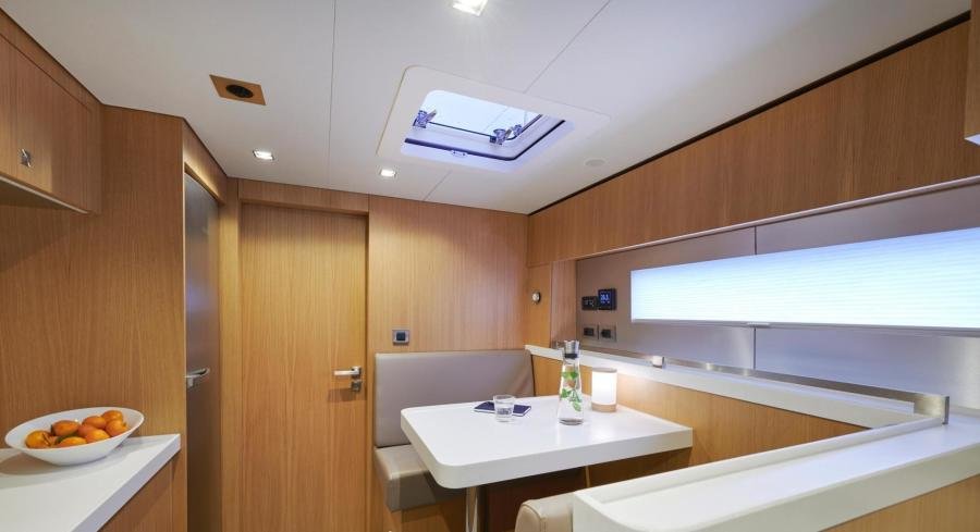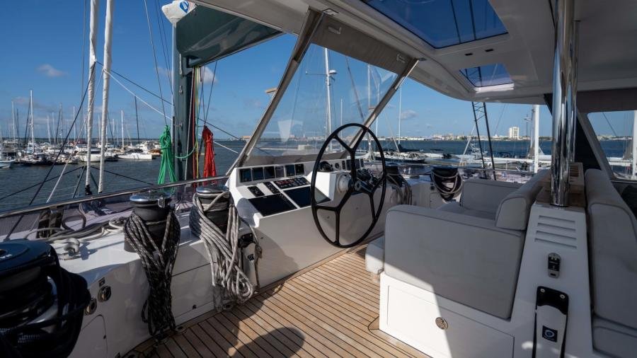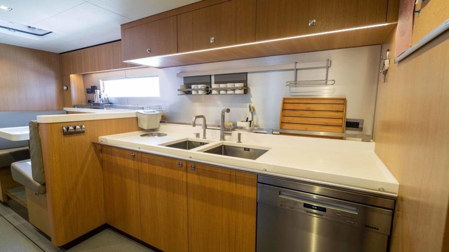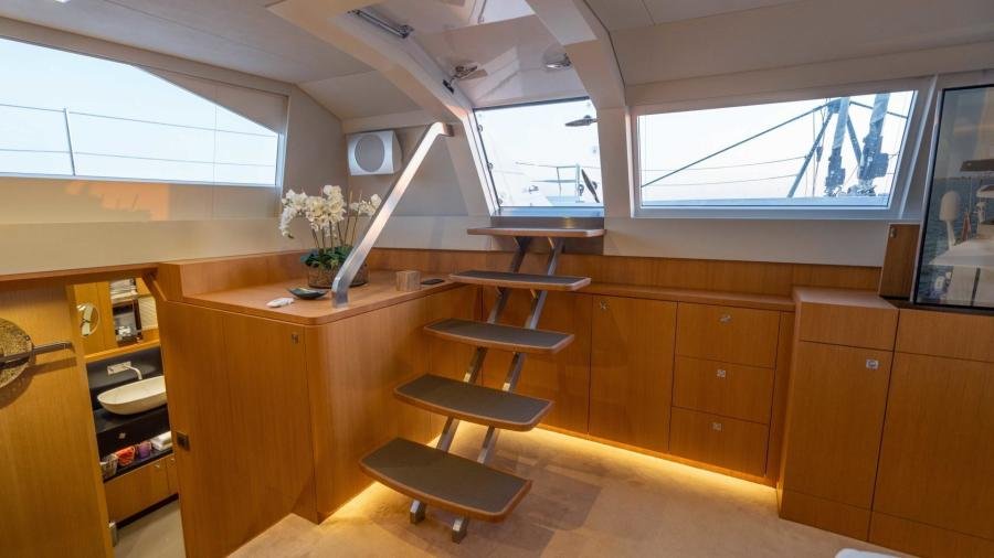 In terms of performance under sail, she is very quick…. The sails were made by the highly respected sailmaker “Incidences” using the latest D4 membrane technology in order to combine form with stability, lightness, and longevity. NDSE achieves 11 knots upwind and 12 knots under gennaker at 90 °, with 15 knots of true wind meaning that she is capable of very good daily averages when cruising.