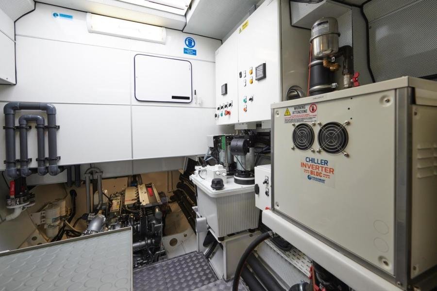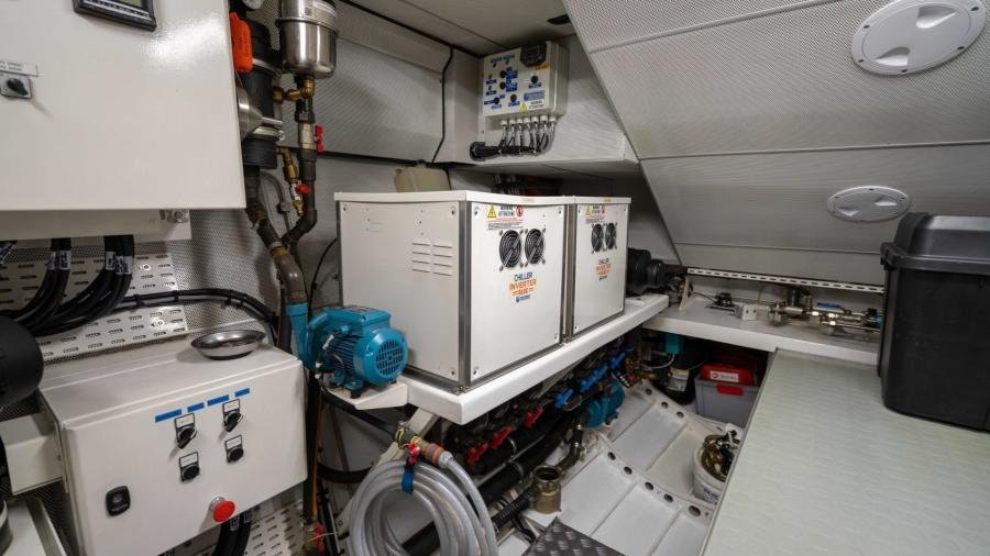 The many exterior lockers offer ample storage for fenders and mooring lines as well as an array of leisure equipment (inflatable longboards, Wakeboard, etc.). NDSE also has a large trunk overlooking the rear platform to store 4 bicycles as well as diving equipment.