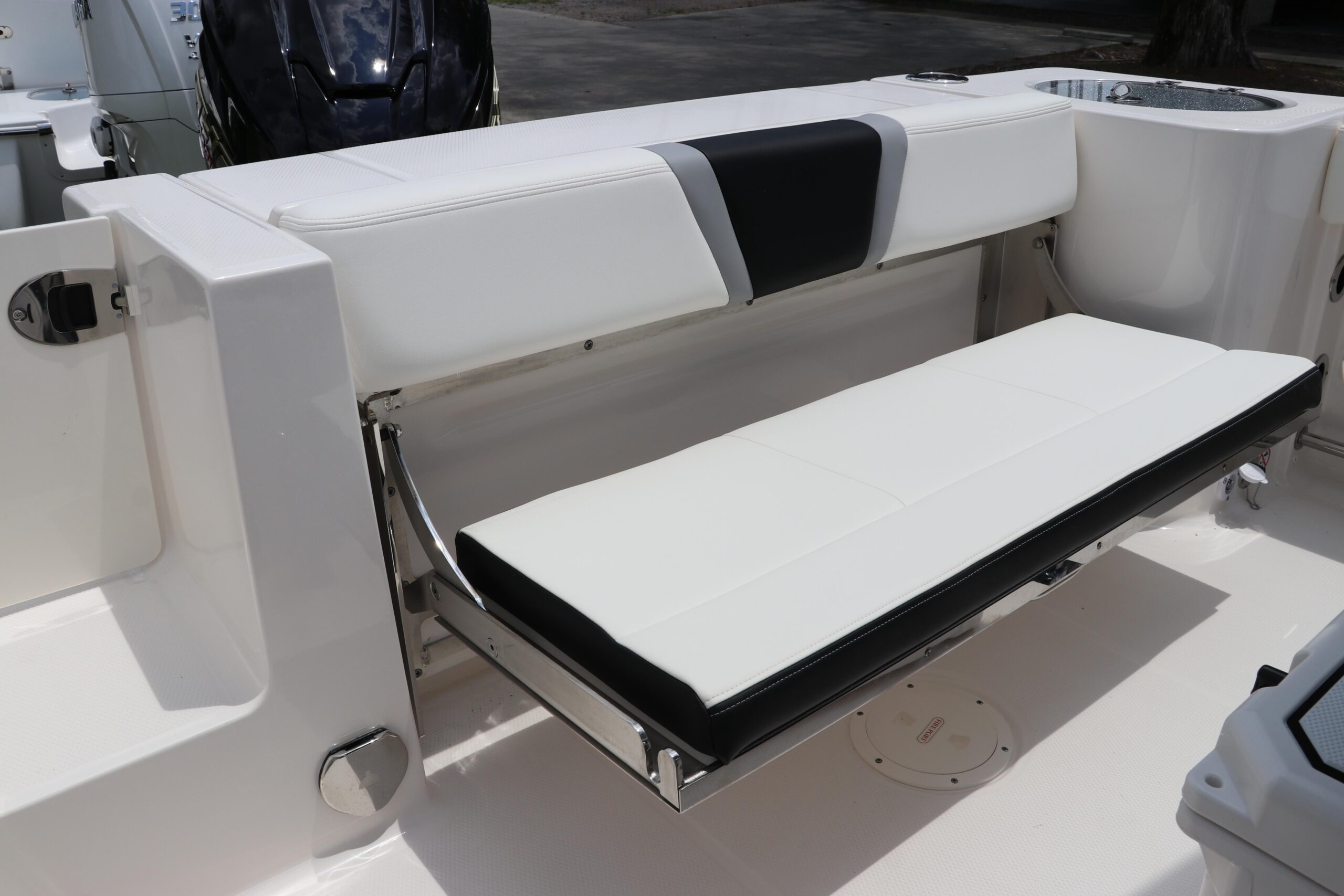 - Aft Full-Beam Seating with Folding Backrest and Custom Stainless Steel Hardware (Converts to Casting Platform)