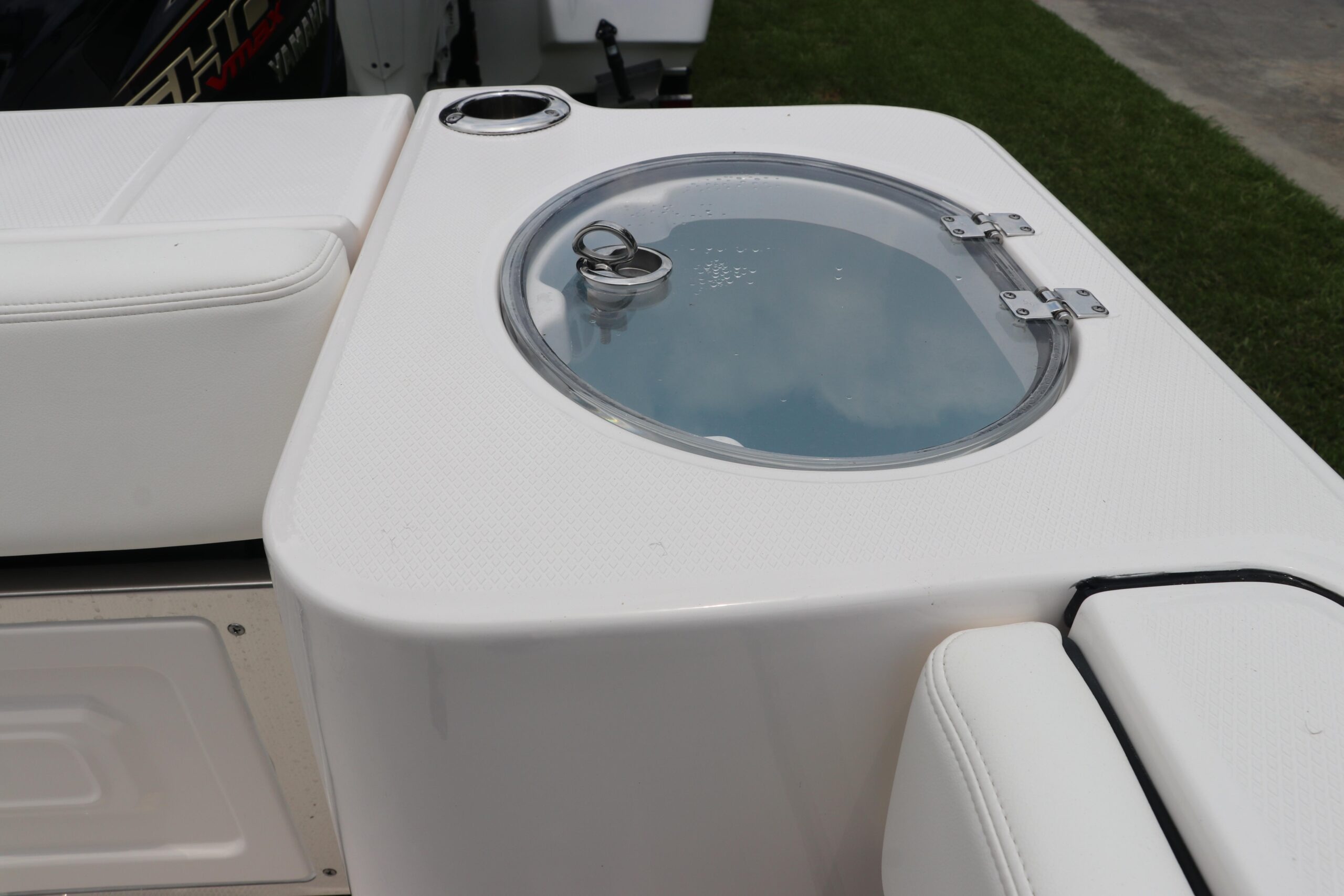 - Aft Insulated Livewell (25 gallons) with Specific Livewell Pump, LED Lighting, Blue Gelcoat Finish with Adjustable Flow Valve