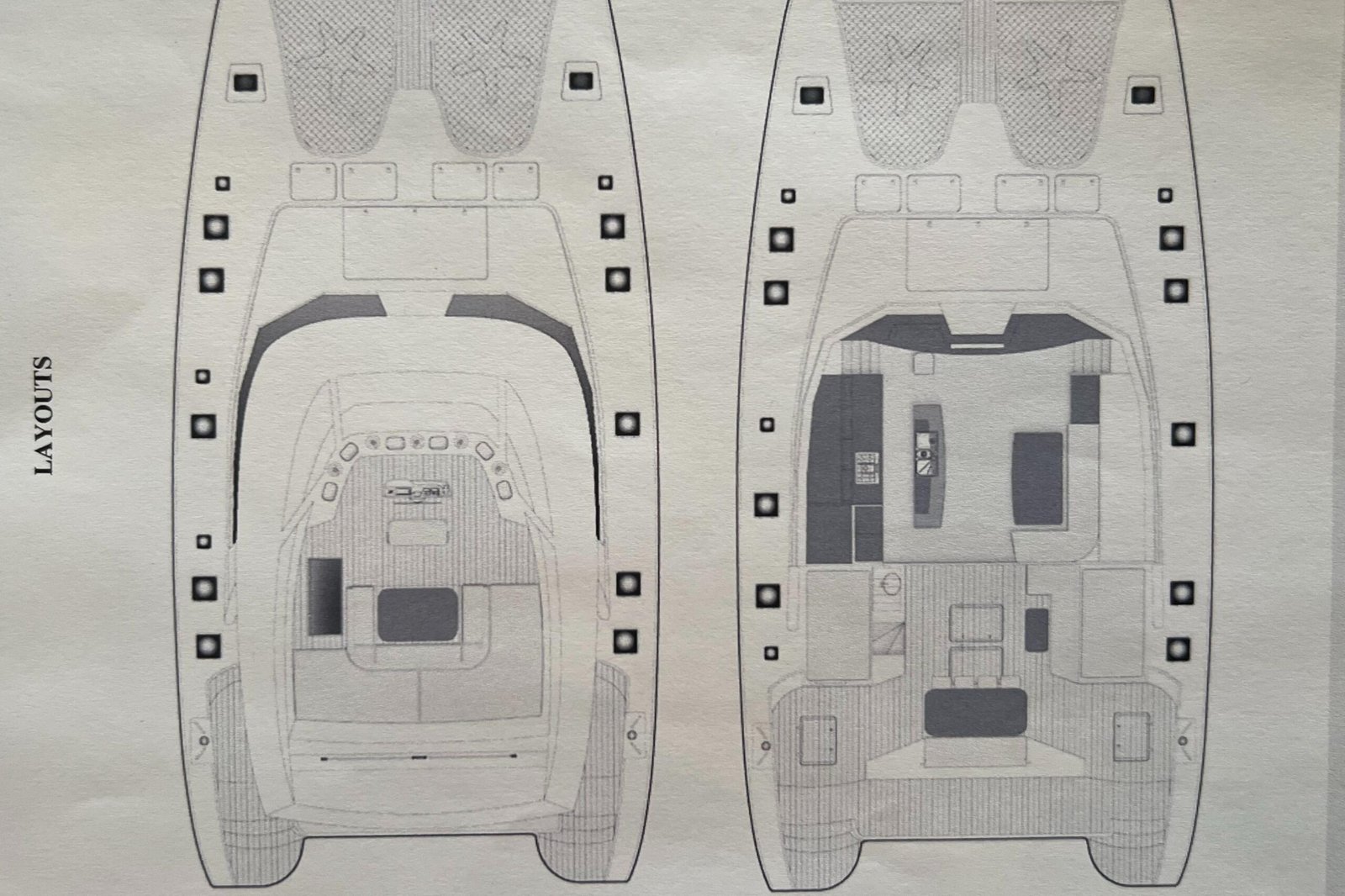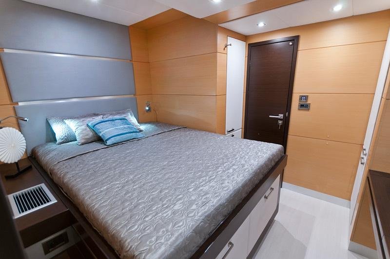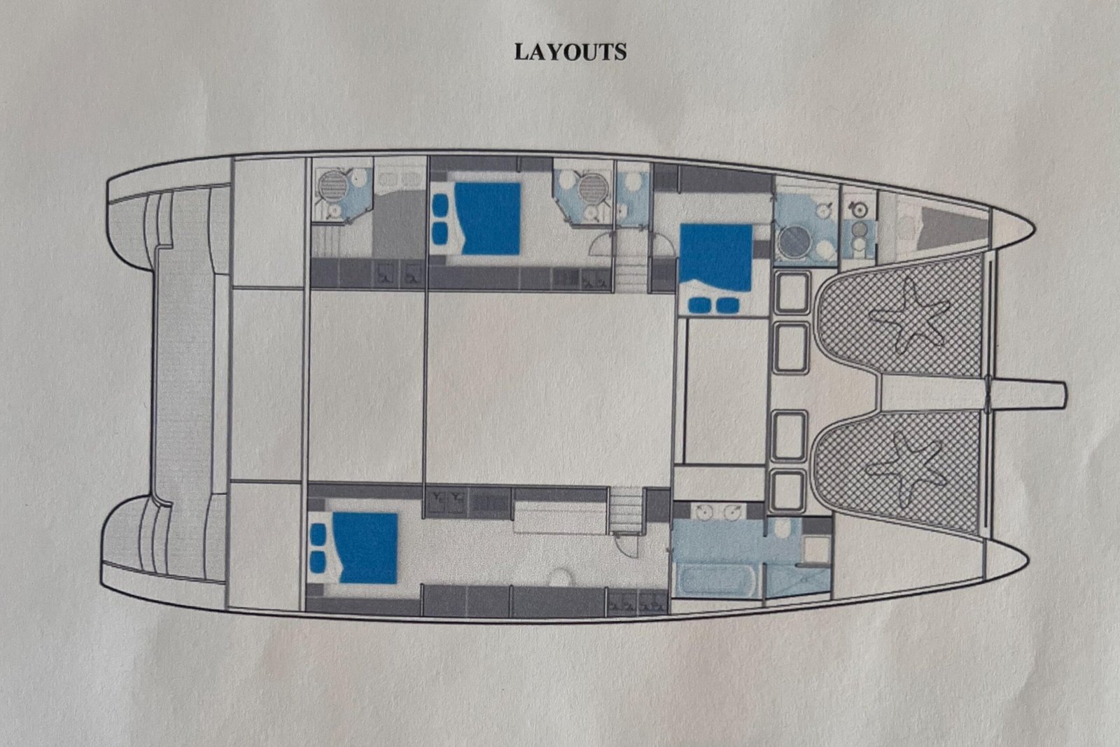 Perfect 5 cabin layout with the master cabin consisting of the entire starboard side hull. 3 staterooms and 2 crew cabins, each with their own A/C, shower, and head.Â