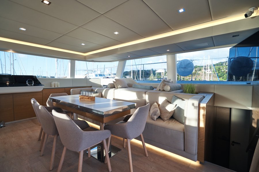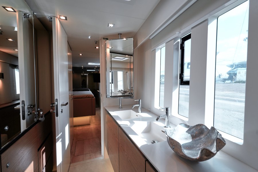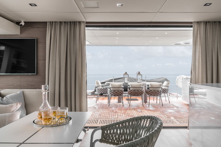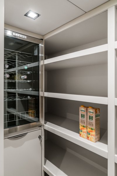 The yacht was conceived by the owner to have redundancies in almost all systems, allowing her to stay up to 6 months at a time without having to re-provision, which proved very handy during covid times. Her 3.5kW solar array allows her to be generator free for multiple days on eco-mode.