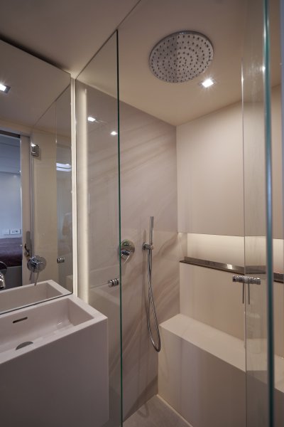 • Bathroom walls finished with sinterized quartz