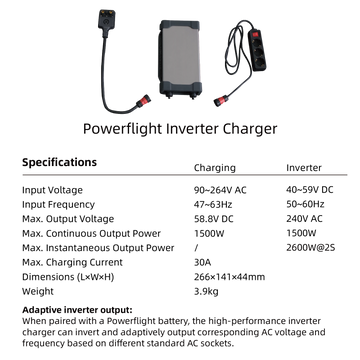 1500W Inverter Fast Charger offers high input fast charging, reducing downtime significantly. The battery can also serve as an inverter to power other devices. These batteries are adaptable to AC or DC power sources and different voltages and provide exceptional flexibility.